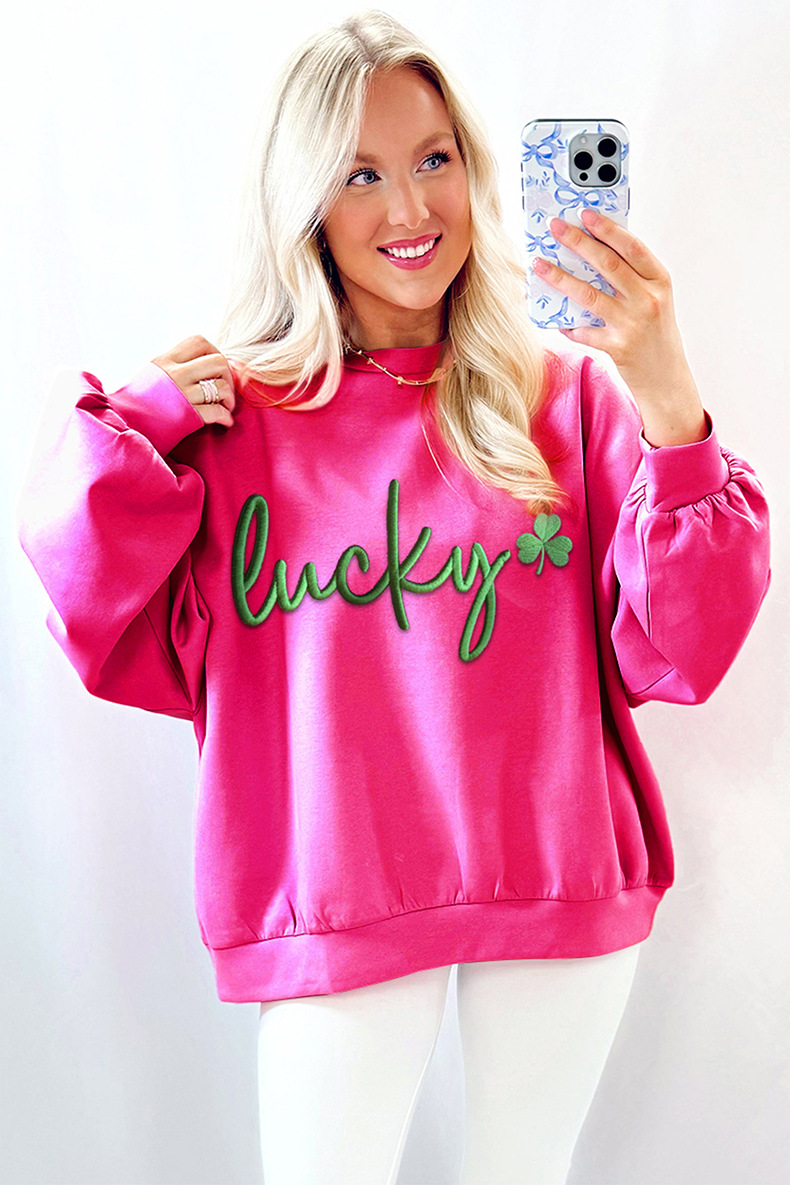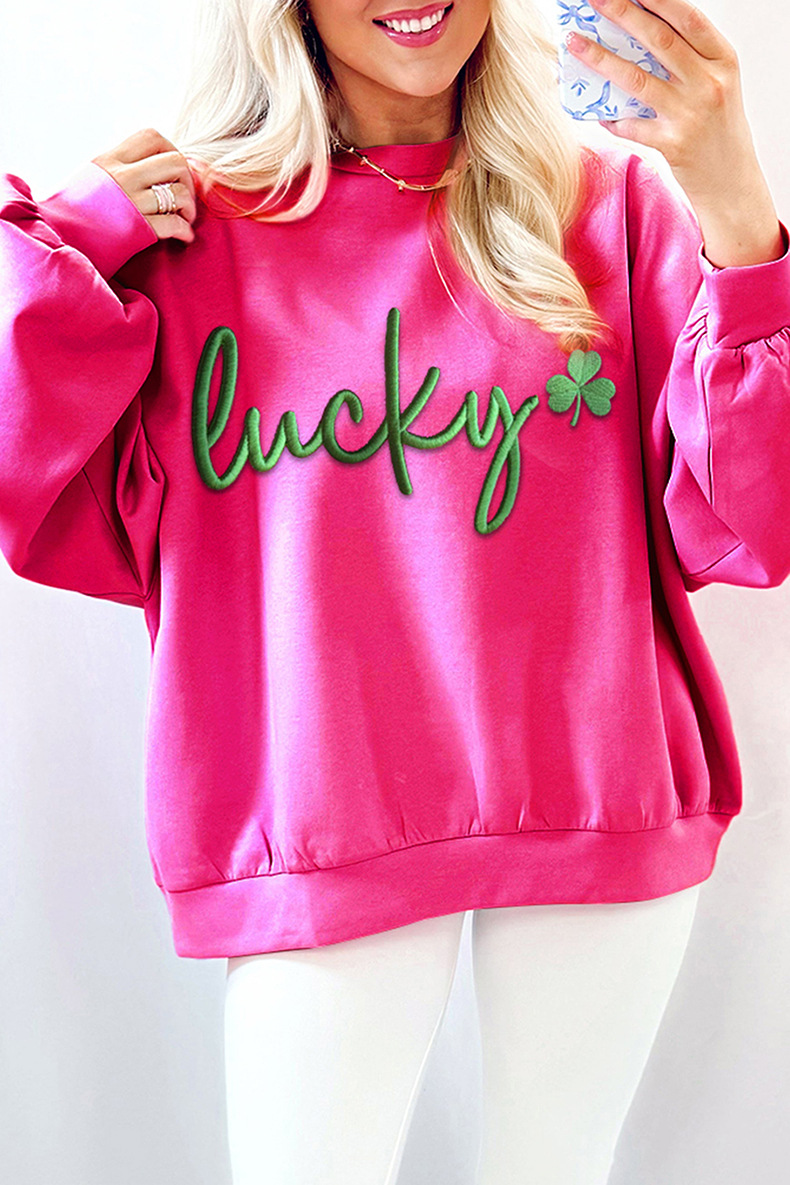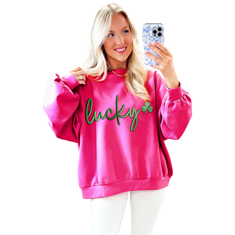 Womens Color-Block Letter Embroidery Crewneck Sweatshirt